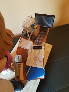 Maruchas que se nos van fuera de Linares, regalo de María para Raquel y Héctor. Ella, con su auricular manos libres y su mesa de oficina con todos los detalles. Él, uruguayo de nacimiento, gran aficionado al fútbol y al equipo de su país "Danubio", también es gran seguidor del Sevilla F.C.